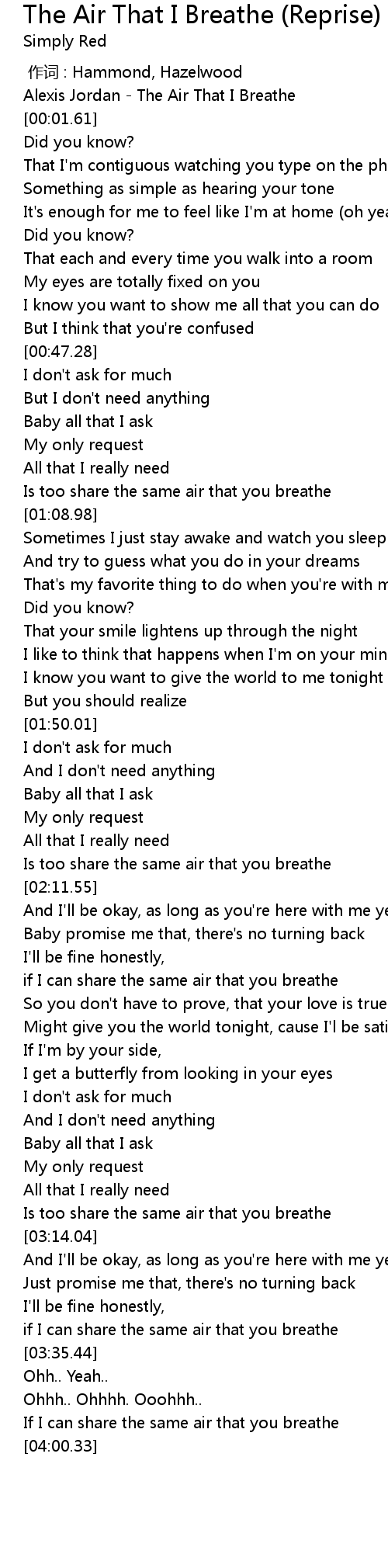 | [00:00.82] | Alexis Jordan The Air That I Breathe |