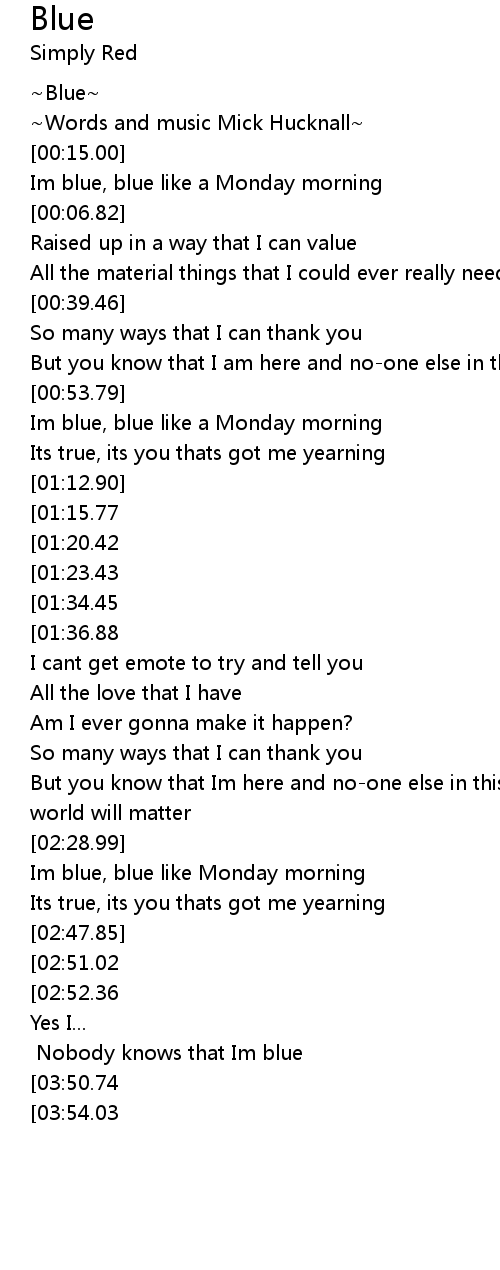 Im blue, blue like Monday morning |