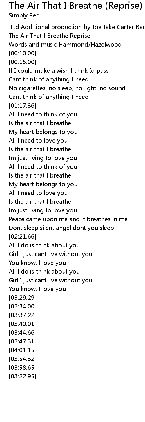 [04:27.44][03:44.66][03:01.80] Is the air that I breathe