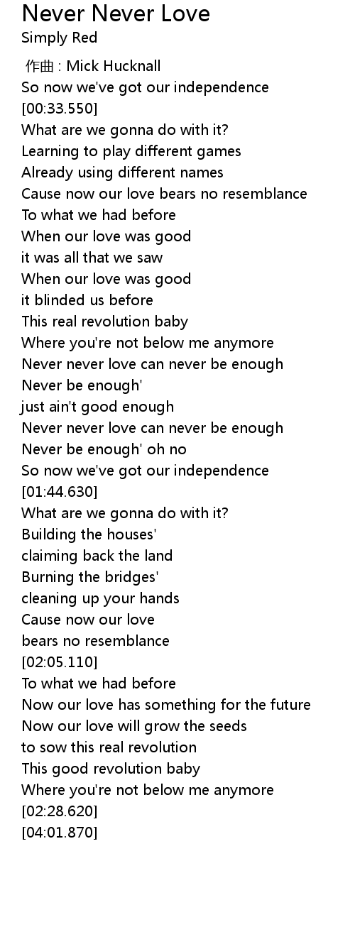 | [00:00.00] | 作曲 : Mick Hucknall |