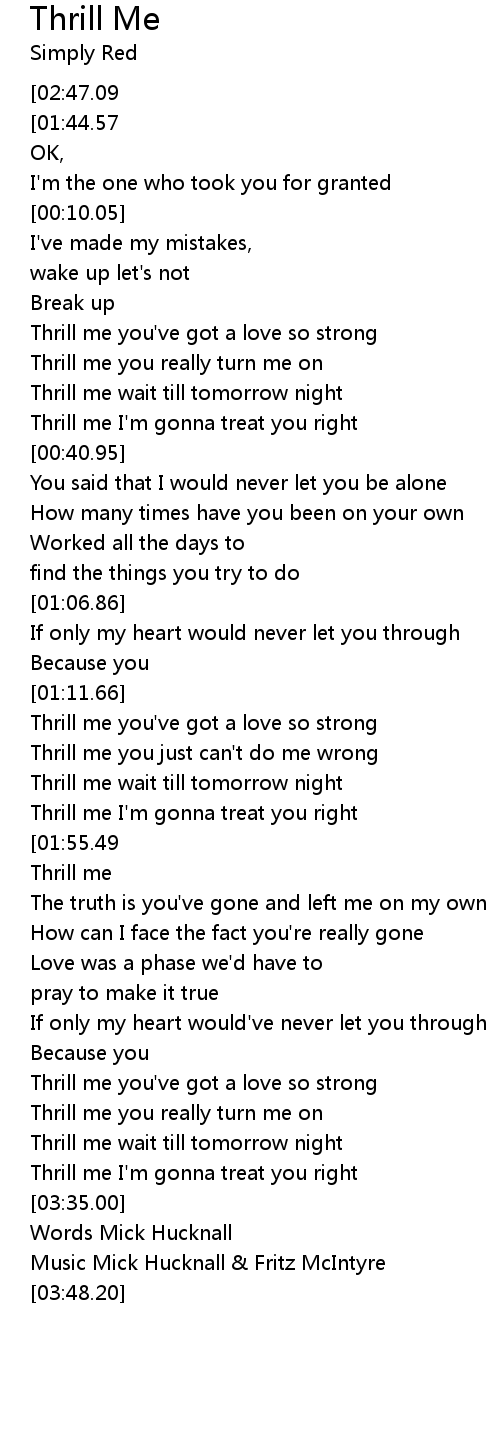 Thrill me you just can't do me wrong |