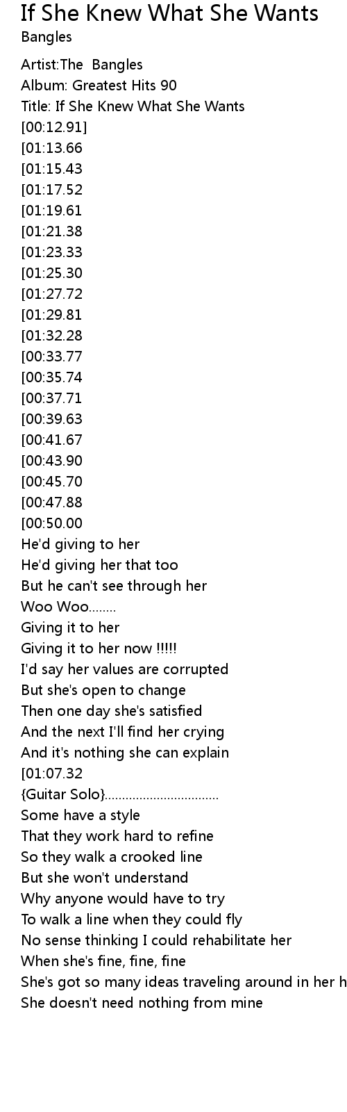 [02:56.91][01:21.38][00:23.59] If she knew what she wants