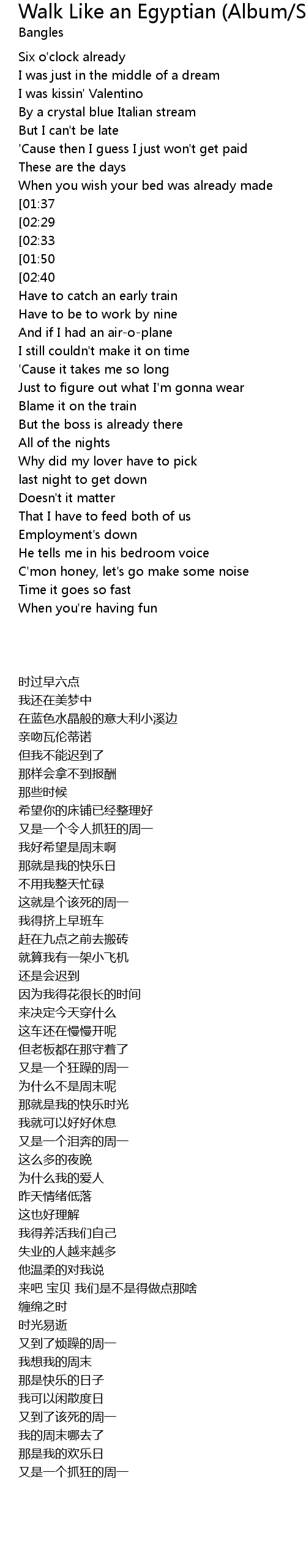 Walk Like an Egyptian (Album/Single) Lyrics