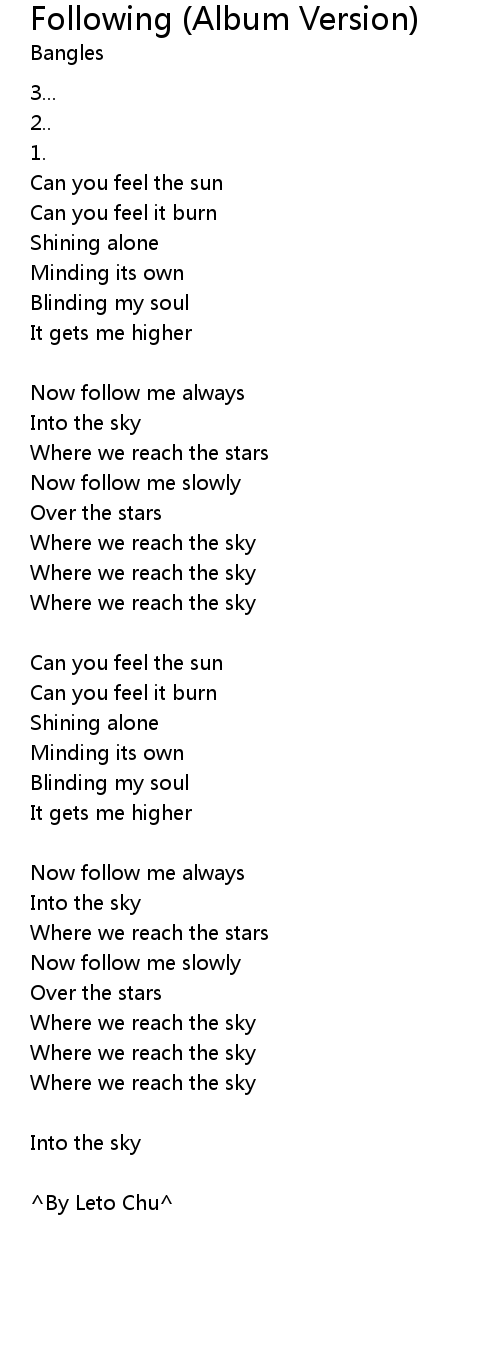 | Song | Following (Album Version) |