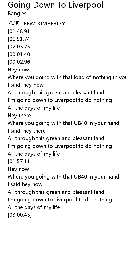 | [00:28.27] | I'm going down to Liverpool to do nothing |