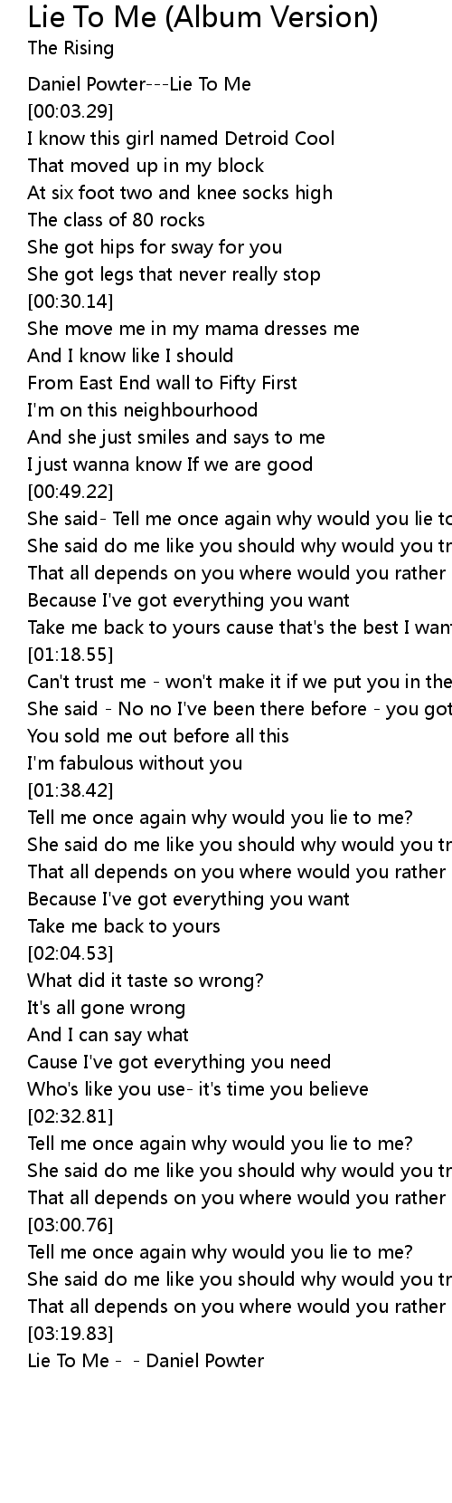 | [03:20.47] | Lie To Me--Daniel Powter |