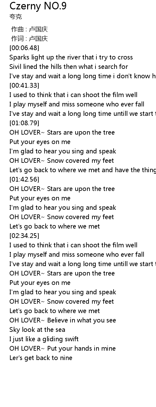 | [03:43.46] | OH LOVER Put your hands in mine |