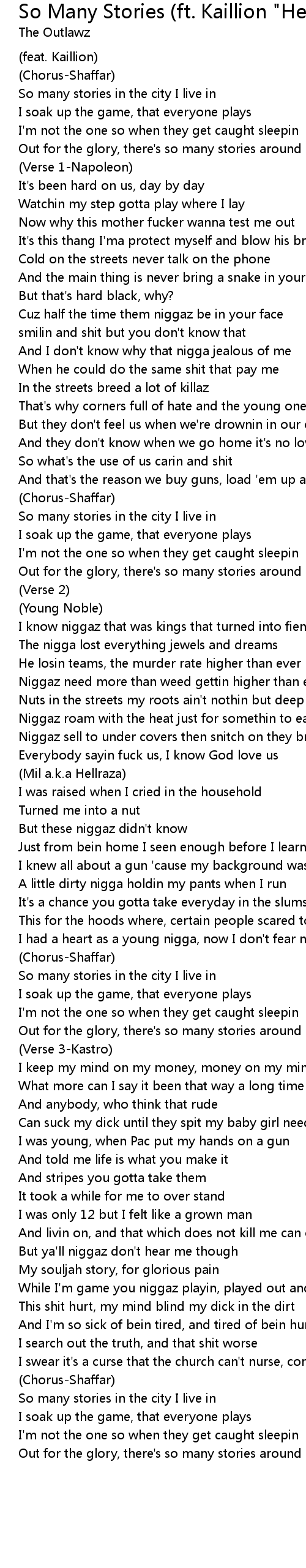 Out for the glory, there's so many stories around my way |