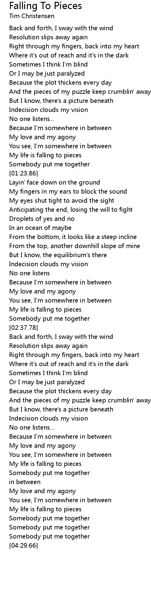 [00:48.38] And the pieces of my puzzle keep crumblin' away
