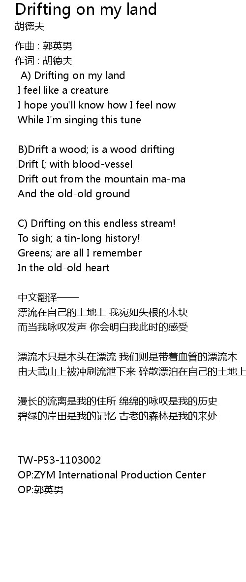 | 漂流在自己的土地上 我宛如失根的木块 | |