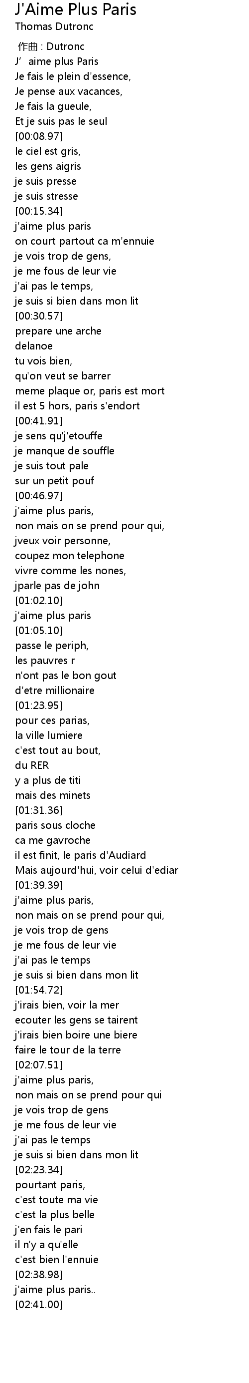| [00:16.19] | j'aime plus paris |