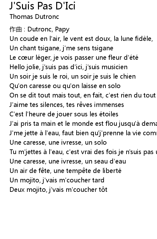 | Song | J'Suis Pas D'Ici |