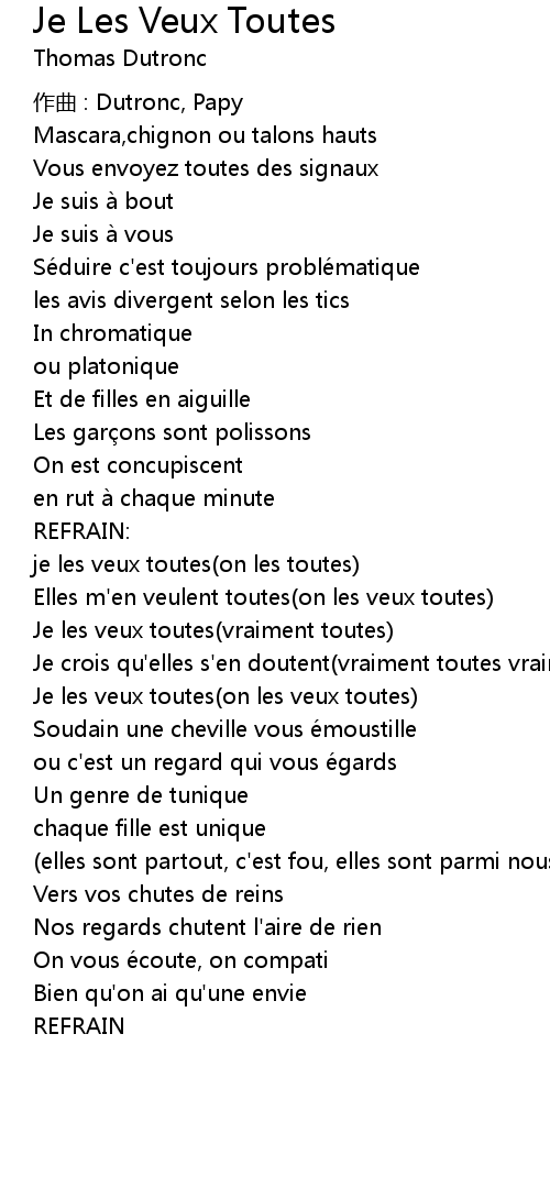 | Song | Je Les Veux Toutes |