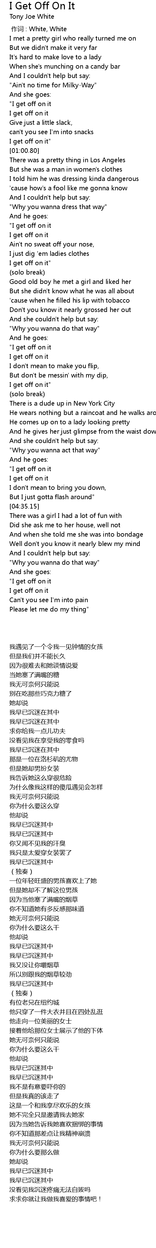 | [04:00.08] | He comes up on to a lady looking pretty |