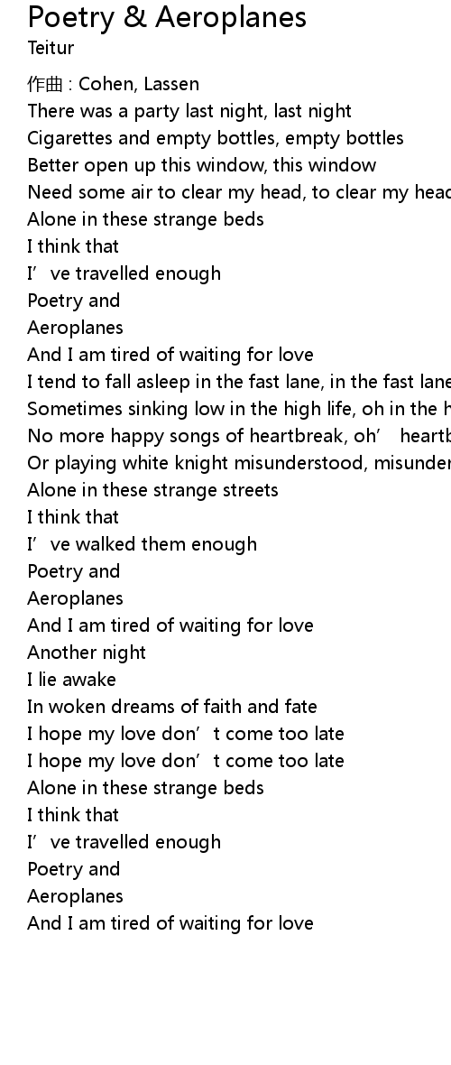 | Song | Poetry & Aeroplanes |