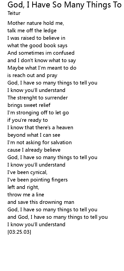 God, I Have So Many Things To Tell You Lyrics