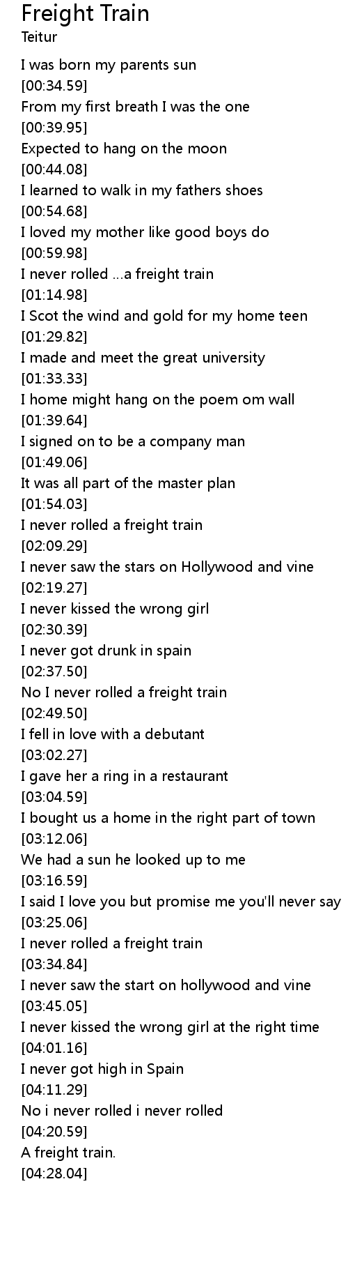 | [03:49.66] | I never kissed the wrong girl at the right time |