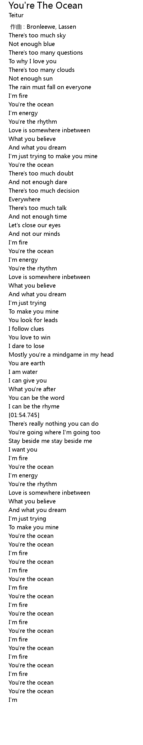 | [01:16.000] | You're the ocean |