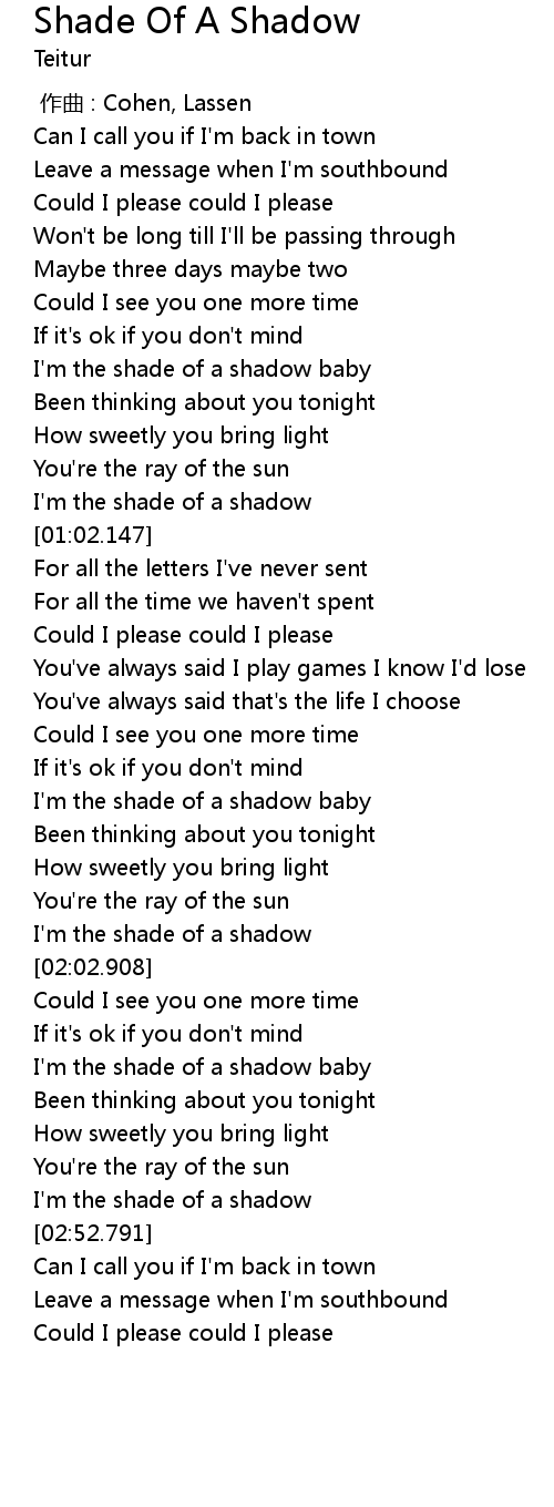 | [00:00.00] | 作曲 : Cohen, Lassen |