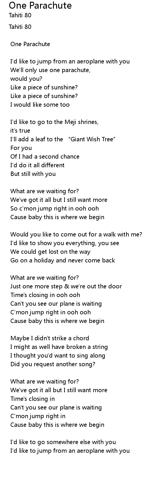 | Song | One Parachute |