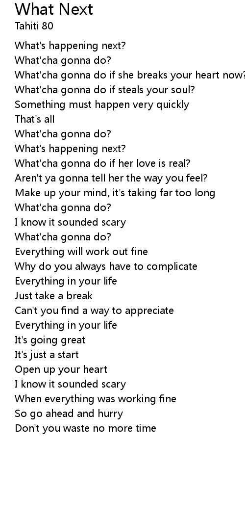 | What's happening next? | |