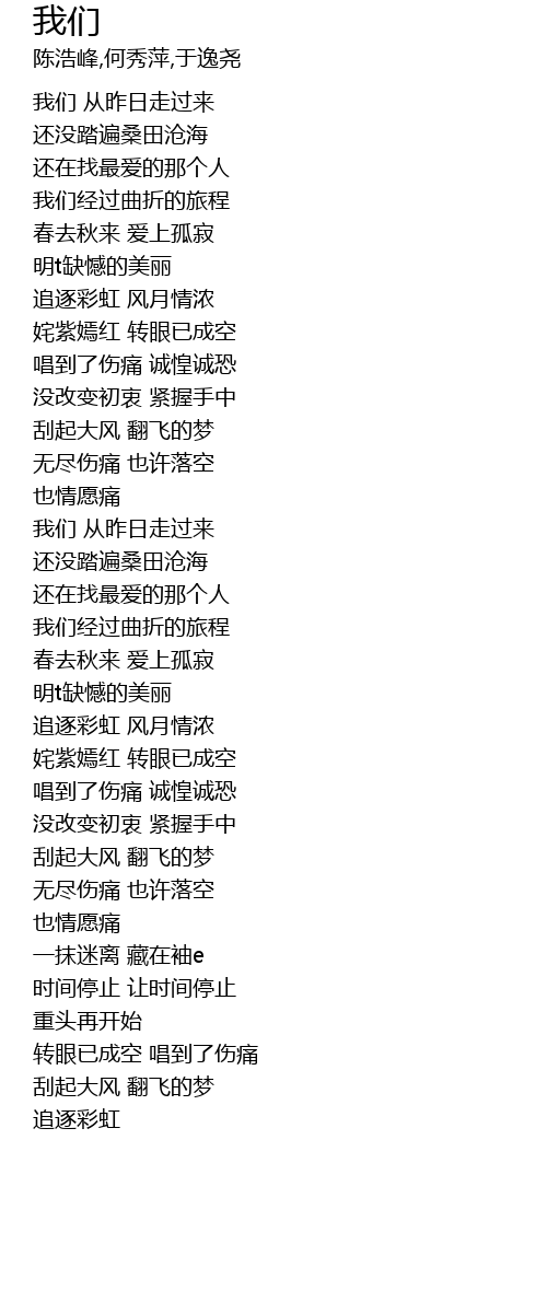 | [00:22.33] | wǒ men cóng zuó rì zǒu guò lái |
