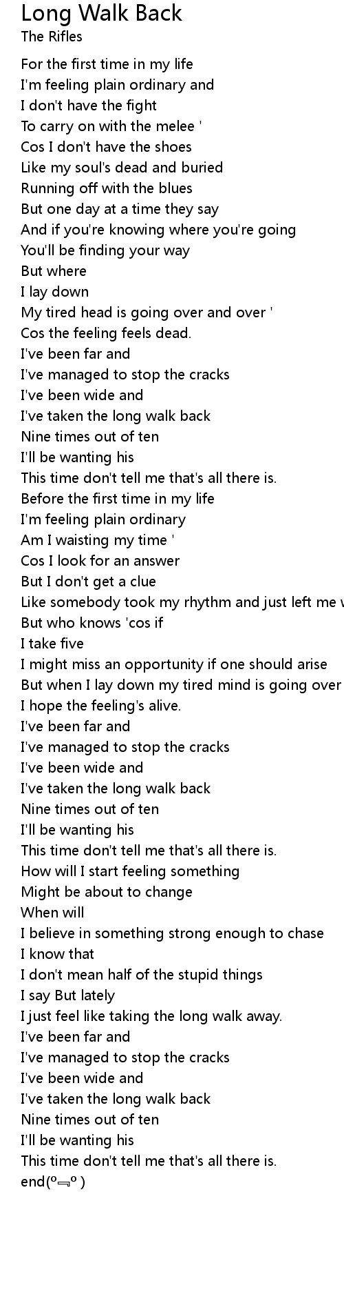 | [02:53.45] | I've taken the long walk back |