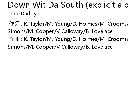 | [00:00.000] | zuo qu : K. Taylor M. Young D. Holmes M. Crooms E. Jackson W. Simons M. Cooper V Calloway B. Lovelace |