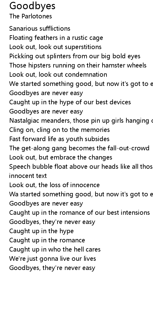 | Goodbyes, they' re never easy | |
