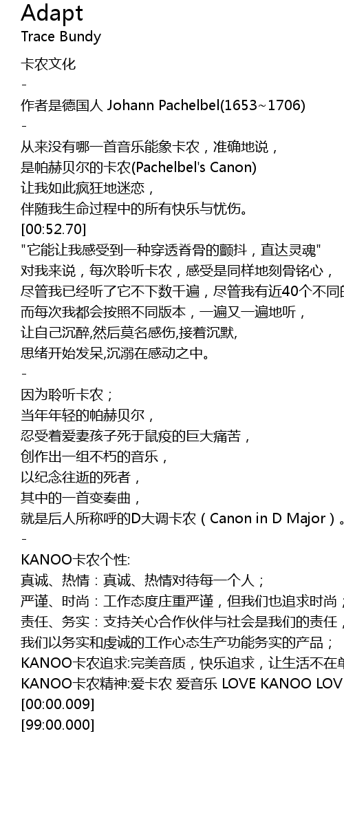 | [02:52.97] | KANOO卡农追求:完美音质,快乐追求,让生活不在单调; |