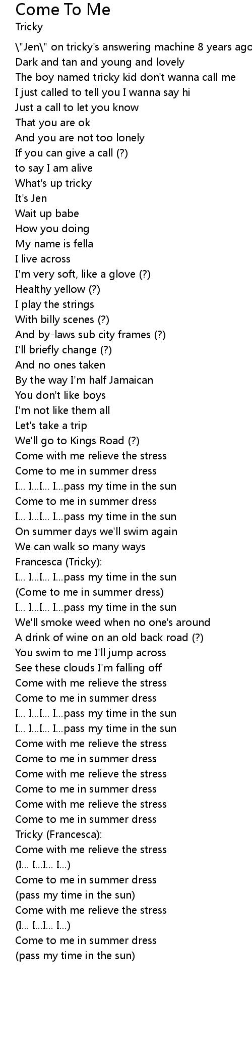 (Come to me in summer dress) |