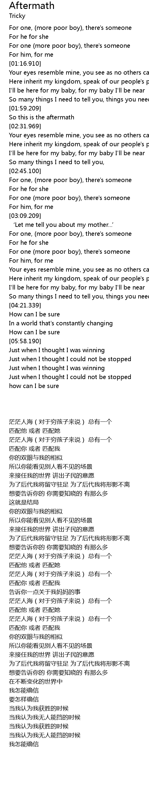 | [00:53.130] | For one, more poor boy, there' s someone |