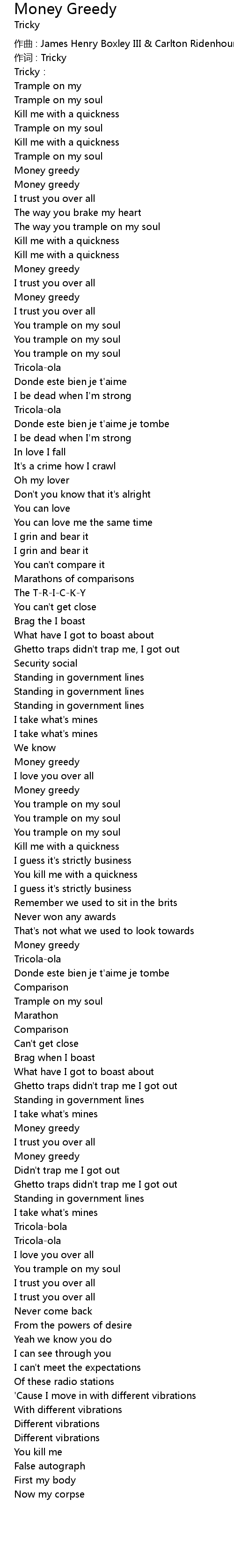 | 作曲 : James Henry Boxley III & Carlton Ridenhour & Tricky | |