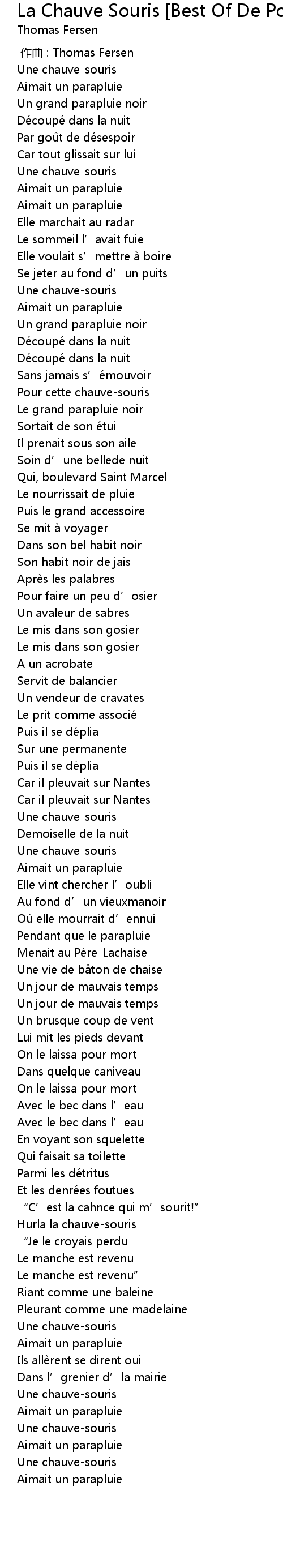 | [00:00.000] | 作曲 : Thomas Fersen |