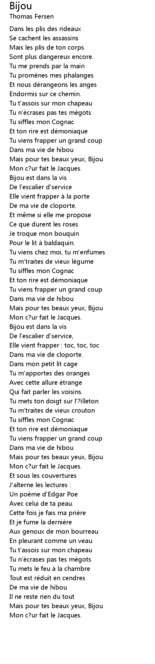 | [02:22.999] | Mais pour tes beaux yeux, Bijou |