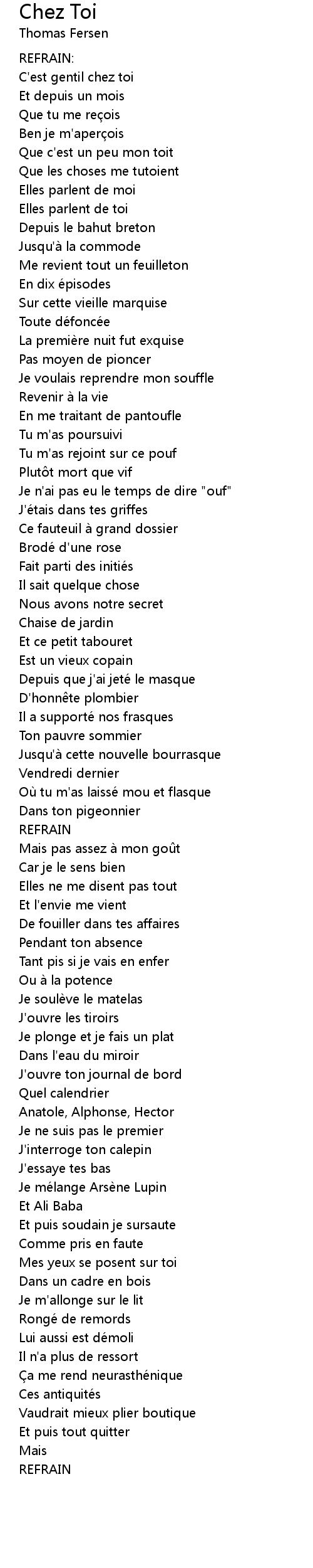 | Song | Chez Toi |