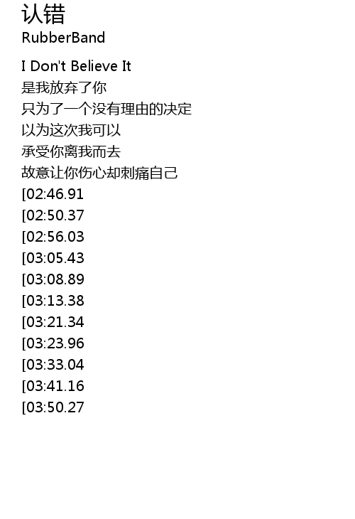 | [01:59.60][03:50.27][04:22.64][04:31.80] | 是我自己错误的决定 |