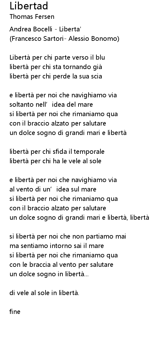 | e libertà per noi che navighiamo via | |