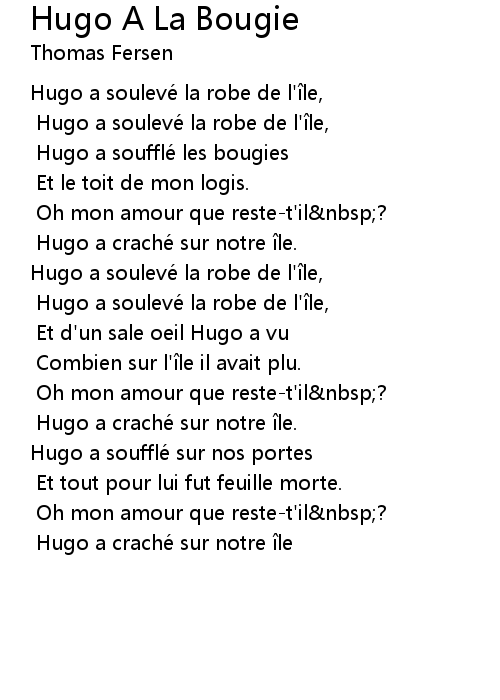 | Song | Hugo A La Bougie |