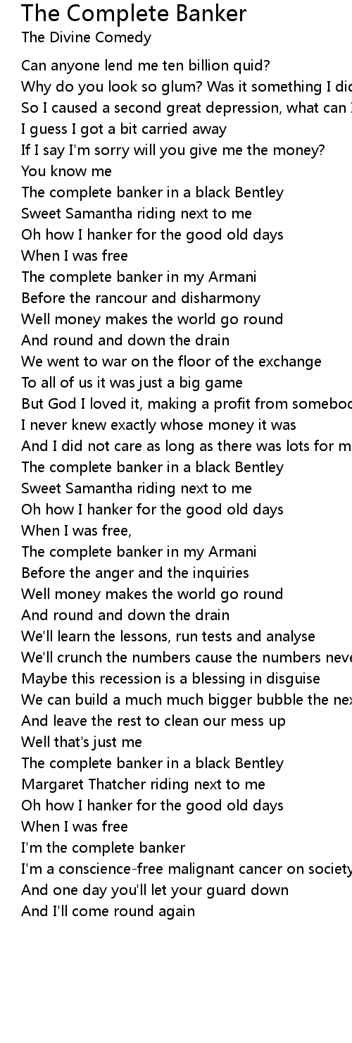 I'm the complete banker |