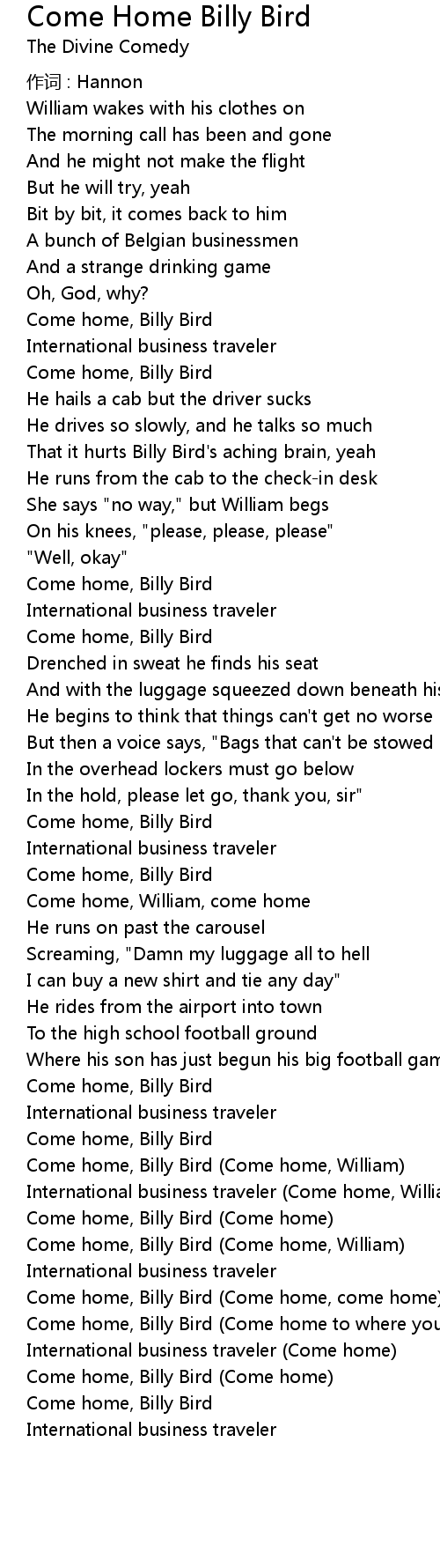| Come home, Billy Bird (Come home to where you once belonged) | |