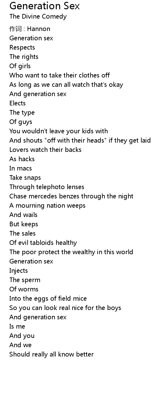 | Song | Generation Sex |