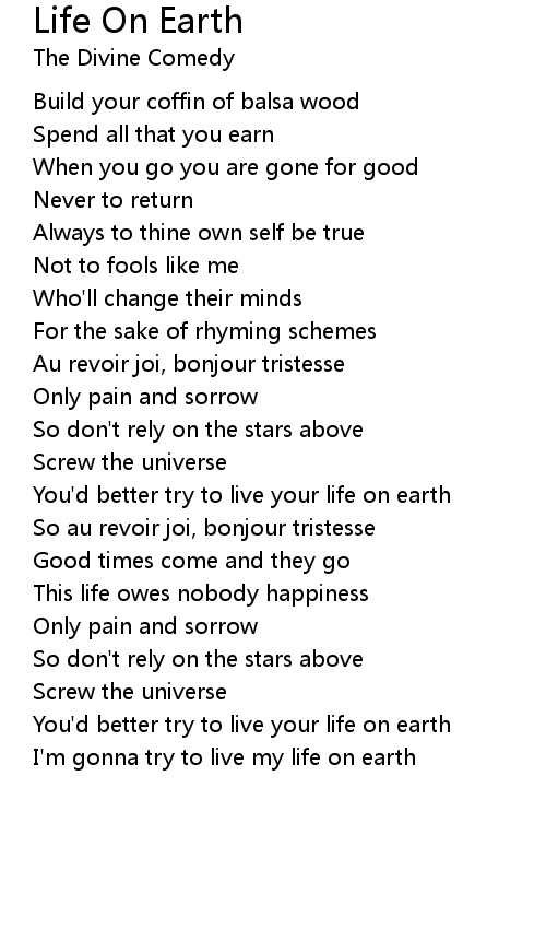 I'm gonna try to live my life on earth |