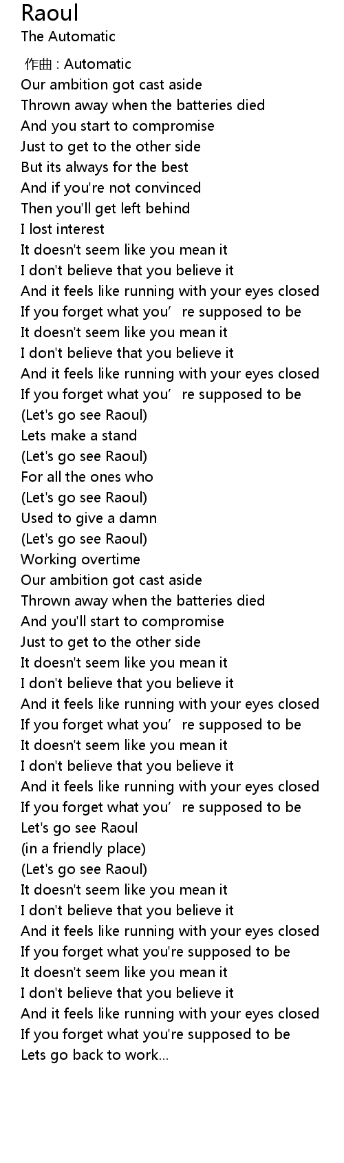 | [00:59.78] | Let' s go see Raoul |