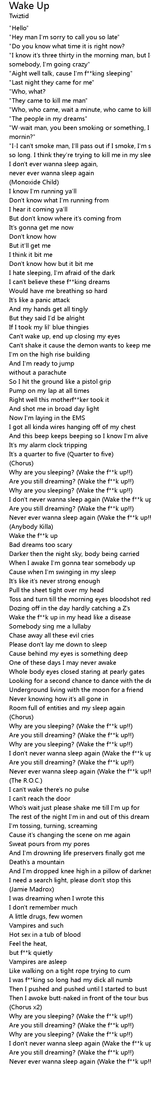 I don't never wanna sleep again (Wake the f**k up!!) |