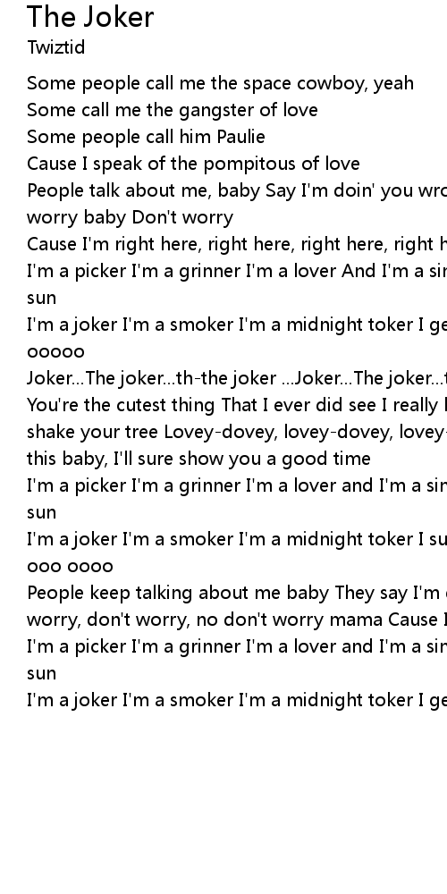 I'm a joker I'm a smoker I'm a midnight toker I get my lovin on the run ooo oooo |