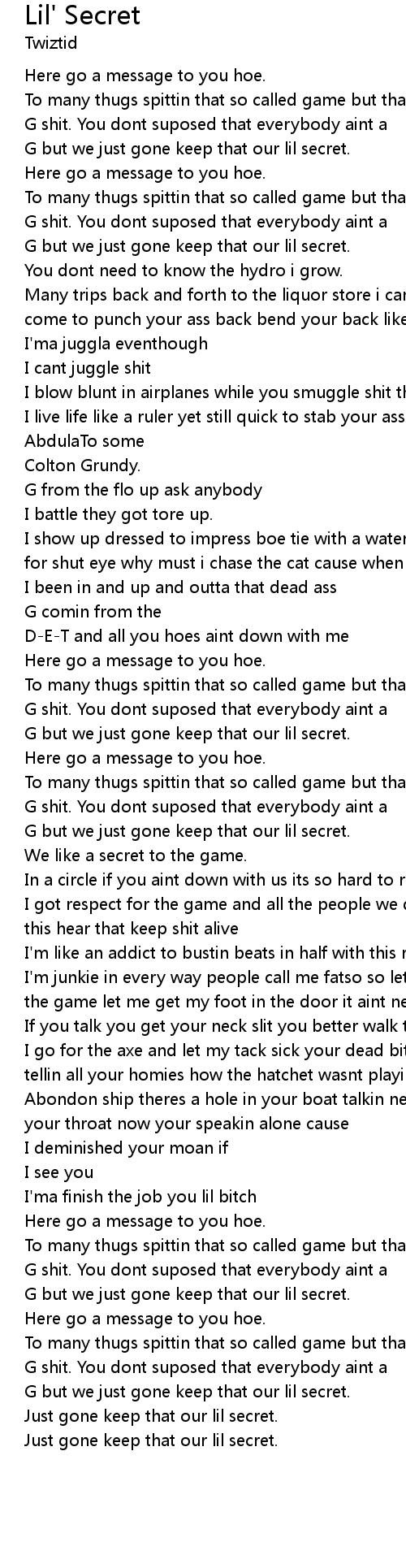 I go for the axe and let my tack sick your dead bitch givin out my transcript tellin all your homies how the hatchet wasnt playin shit. |