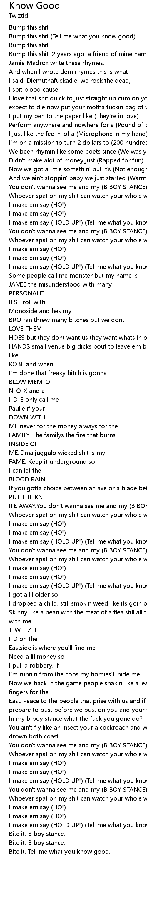 Bump this shit (Tell me what you know good) |