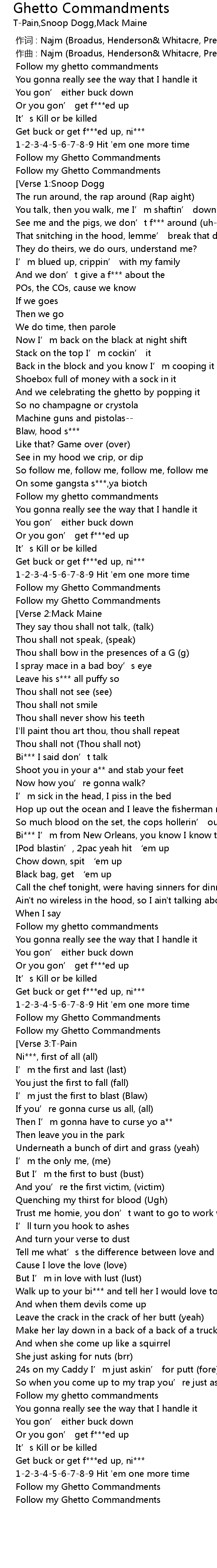 | [00:44.095] | Follow my Ghetto Commandments |