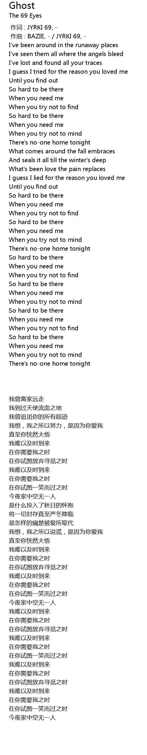 | [00:00.000] | zuo ci : JYRKI 69, |